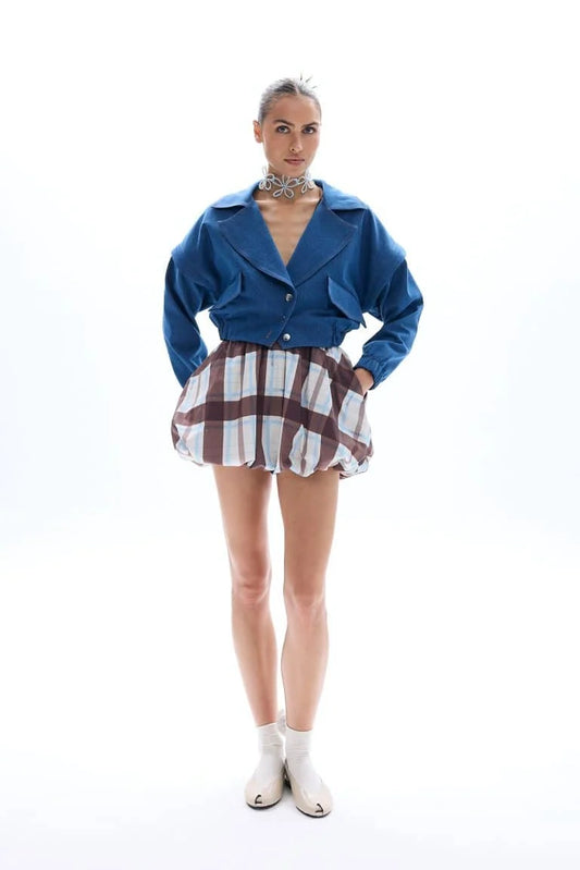 Ciel plaid balloon mini skirt with signature
