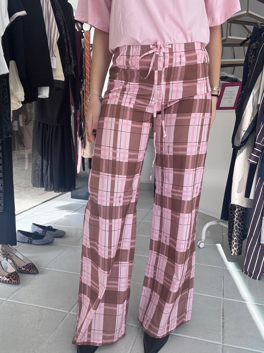 Pink plaid pants with signature print