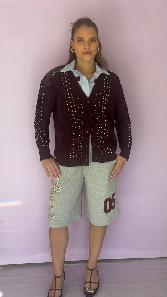 Sold outBurgundy cardigan with studs