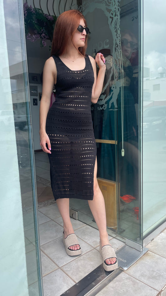 Round neck knit dress with low back