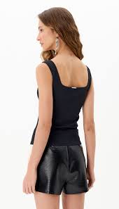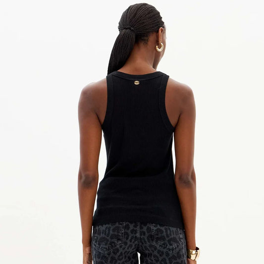 Black ribbed tank top with round neck