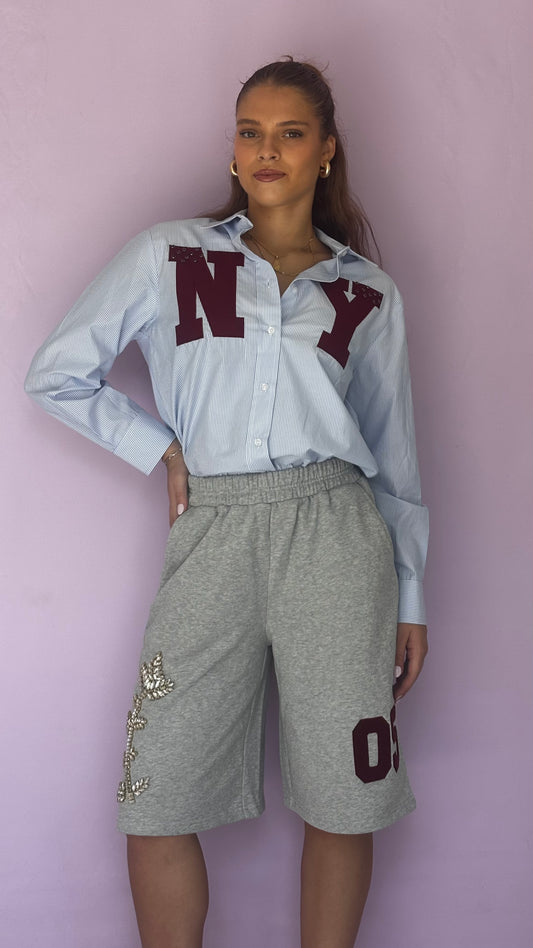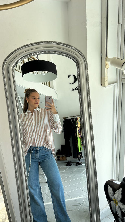 Striped oversize shirt with rhinestones