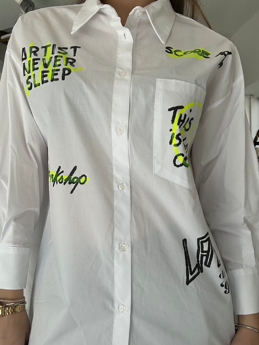 White long shirt with lettering