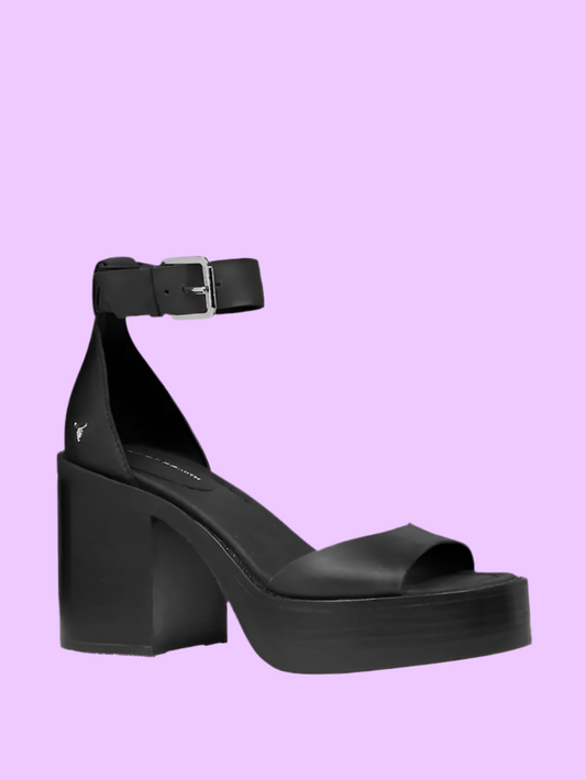 Black chunk low heel sandals
