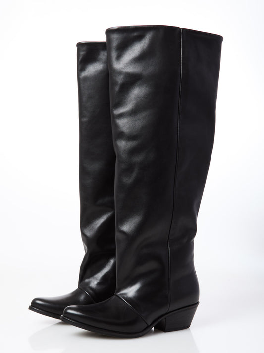 Black cowboy leather boots