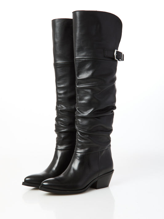 Black leather cowboy boots