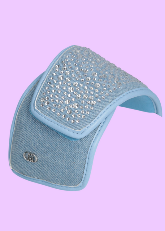 Denim platform sandals with rhinestones