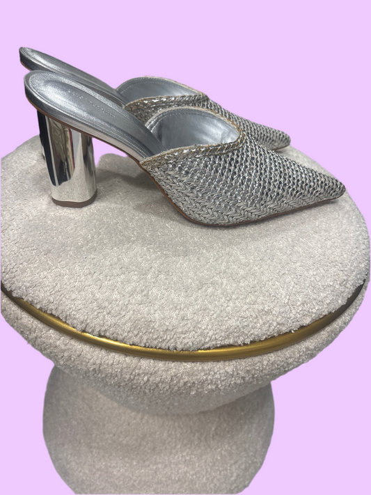 Silver high heal mules