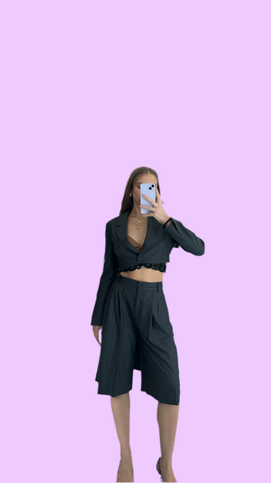Grey striped below knee bermuda