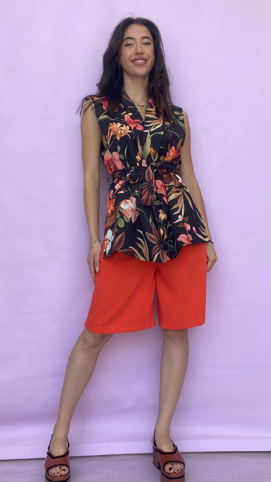 High waisted eco leather bermuda-short