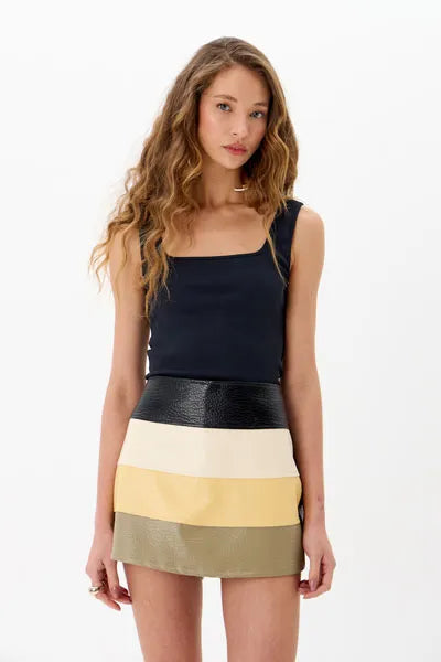 Butter yellow PU skort