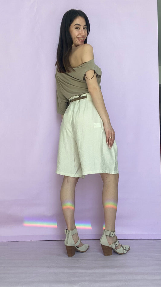Beige Bermuda with camel belt
