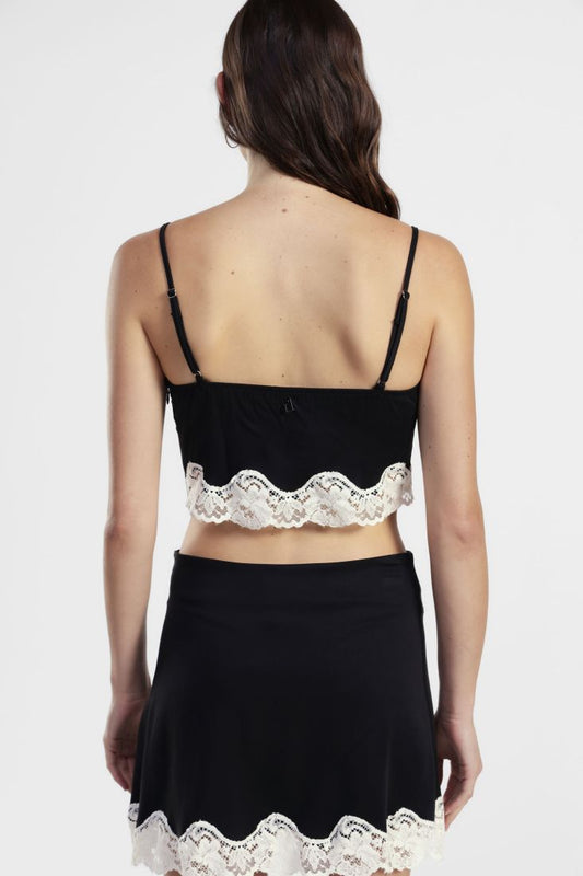 Crop top with V-neck and lace trim