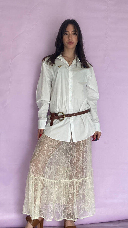 Cream long lace skirt
