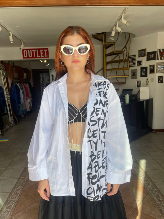 Vicolo crop shirt with cuts on the shoulder