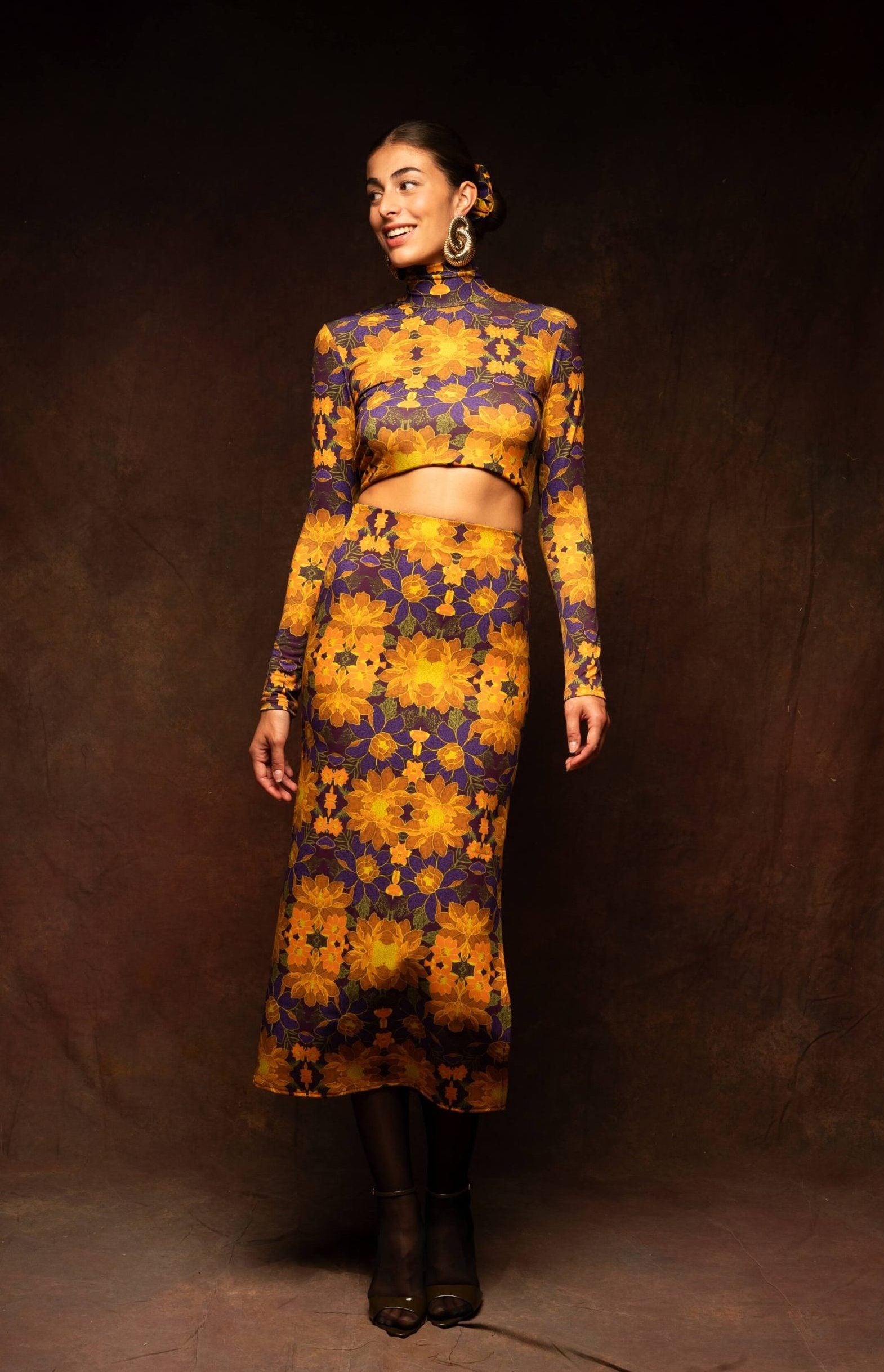 Mairis Maxi skirt with a side-seam slit up to the knee and an invisible zipper. The fabric has a little stretch; the silhouette is fitted and straight.