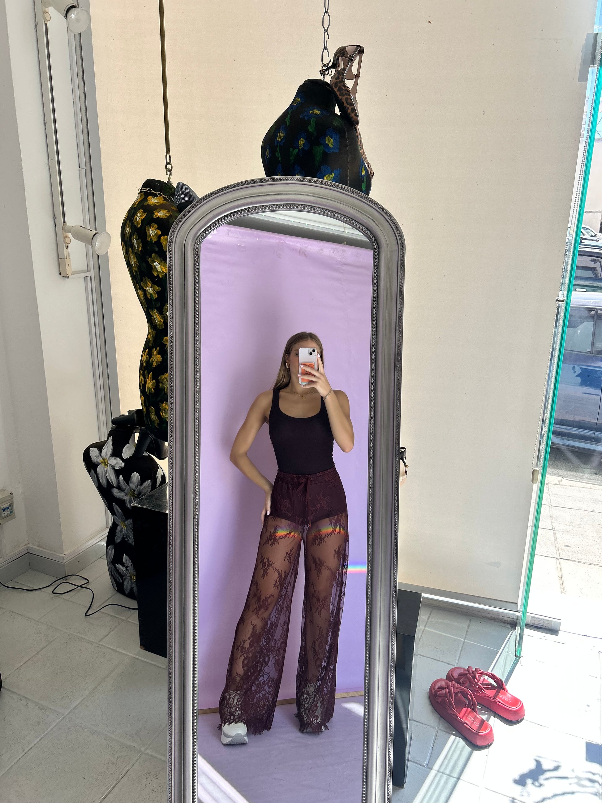 Burgundy lace pants