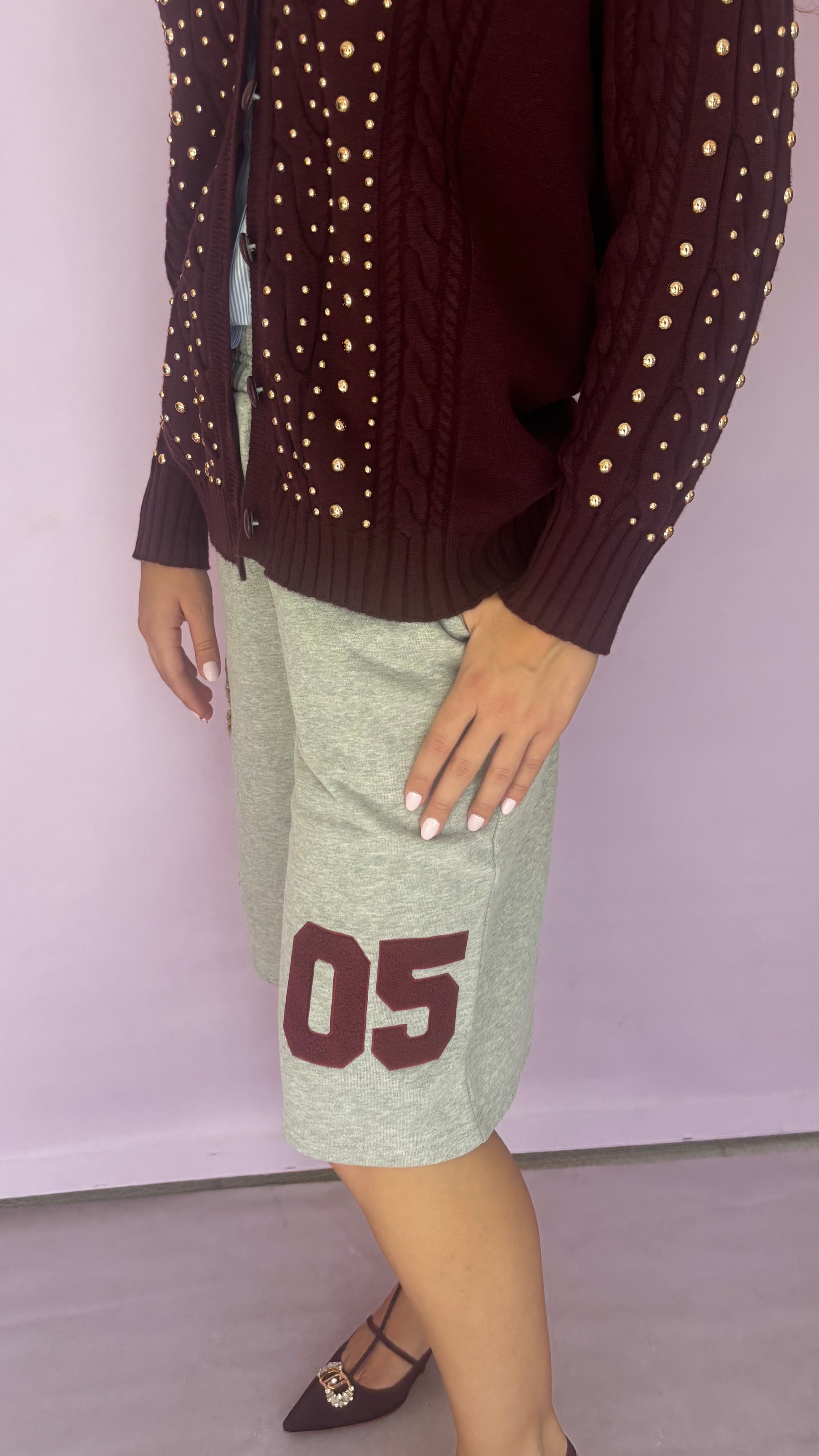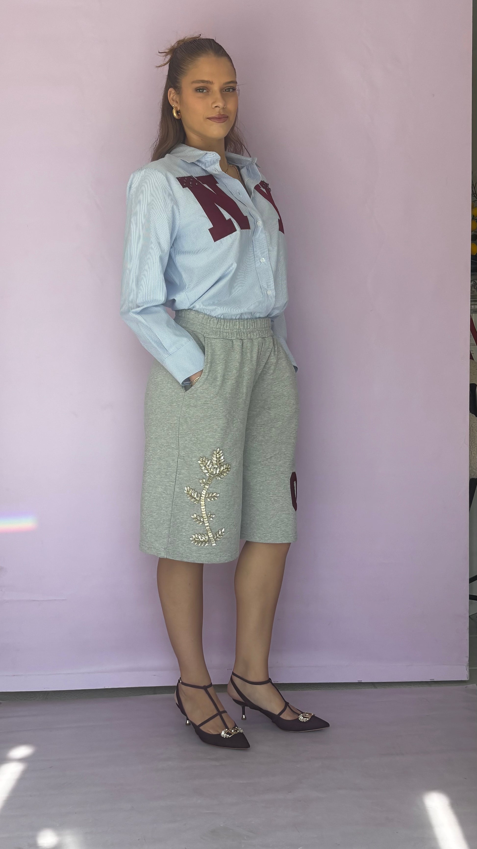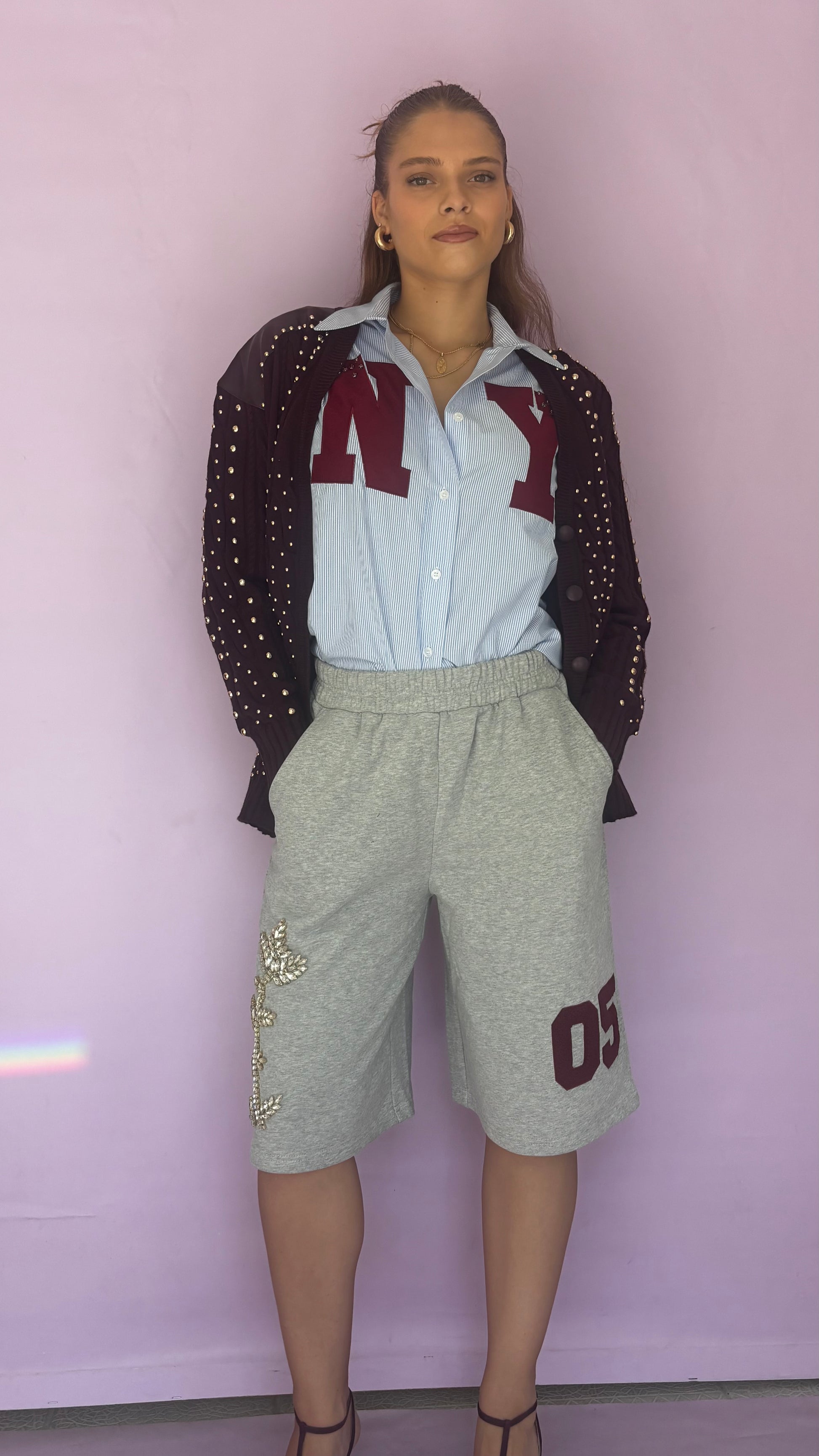 Trash and luxury basketball long cotton bermuda with rhinestone and number application