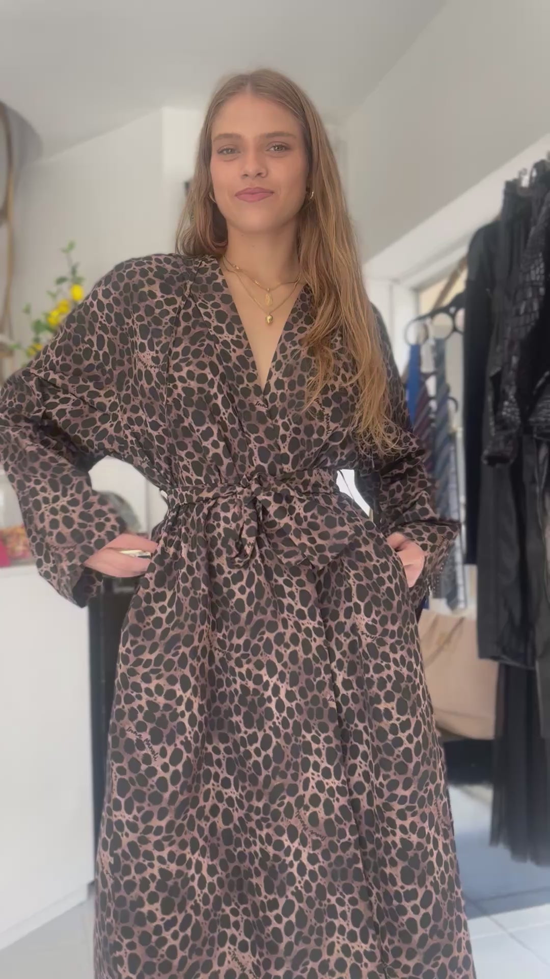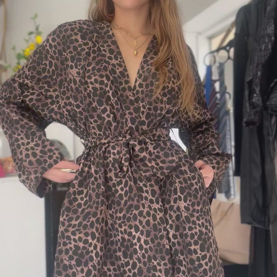 Inna Manoli taffeta leopard trench coat with hood and side pockets