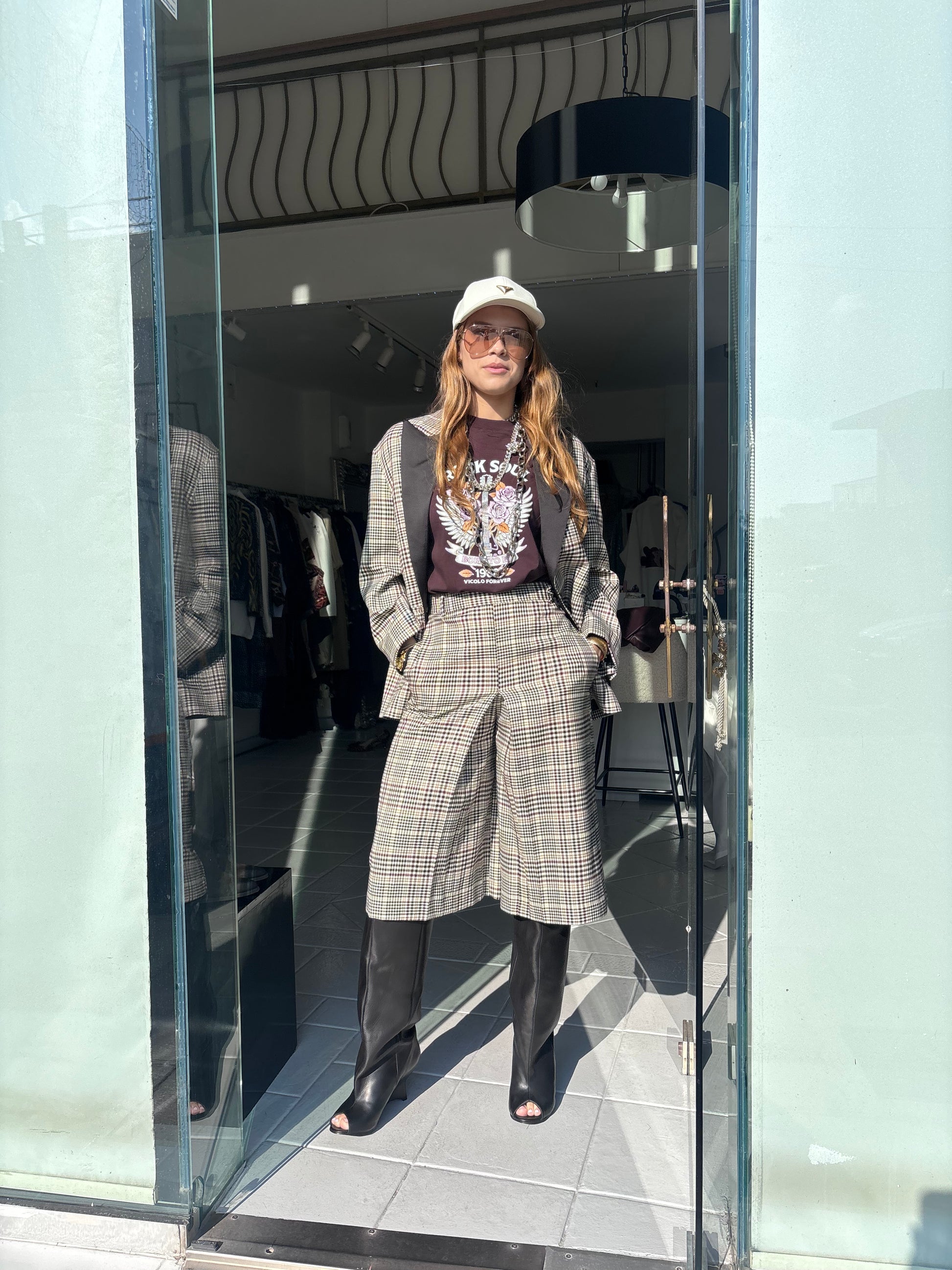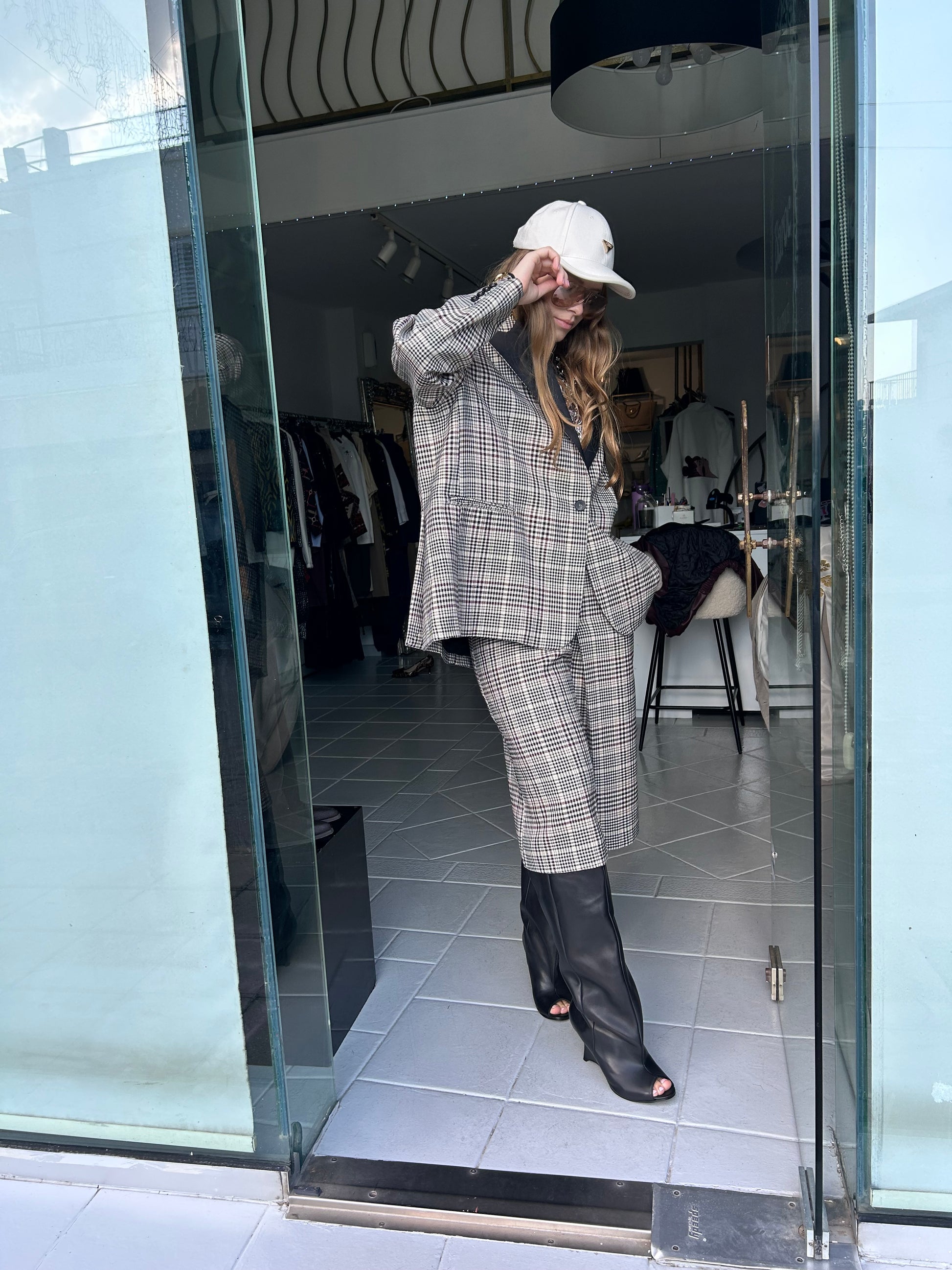 Vicolo oversize single breasted blazer with black collar that is a set with zip culotte TF0487-AW25